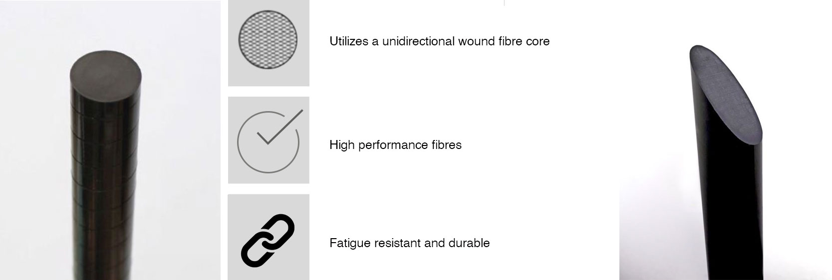 Solid carbon offers the lowest possible cross-sectional area, and the manufacturing method allows for the cable to be shaped in elliptical or aerodynamic profiles with tooling, if required.